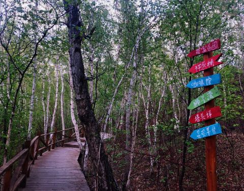 景区工作人员还跟我们说路线 走上栈道 一路上环境不错 有很多小木屋 景区比较安静 不知道是不是我们来的不是时候?总觉得有点冷清 来呼伦贝尔旅游的就不建议进入 好看的景色都在路上 来度个假可以考虑住住小木屋 早上起来景色应该是不错的 不过小木屋价格就比较贵了 !