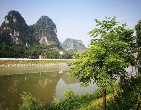沿着南环路西走几分钟就到了桂江边,沿江有峭壁巨石,江水清澈碧绿,还有不少人在游泳呢!很美丽值得一去
