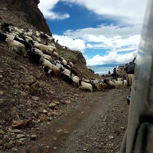 金骆驼 放在内陆绝对算大,但这里是西藏,这个体量在西藏众多的水域中真不算什么,能让它脱颖而出的是湖里的...在阿里的鬼湖碰上之前在拉萨,那曲都碰到过的户外俱乐部,在他们的建议下,我们开始途搭之旅,来到日喀则。一路上并不是那么顺利,遇上过沙尘暴,一个半小时,眼睛睁不开,沙子还进了相机,直接报废;遇到过临时...在阿里的鬼湖碰上之前在拉萨,那曲都碰到过的户外俱乐部,在他们的建议下,我们开始途搭之旅,来到日喀则。一路上并不是那么顺利,遇上过沙尘暴,一个半小时,眼睛睁不开,沙子还进了相机,直接报废;遇到过临时检察站,告诉暂停通行,不得不绕路;碰上了停电,零下20度、没有电热毯瑟瑟发抖度过了一夜;中途车还坏过一次,在前不着村后不着店的情况下饿了两顿饭。但是也有收获,看到了藏羚羊,看到了札达土林国家地质公园,看到了古格王国遗址,最终驶入204省道,准备去看多庆湖和卓木拉日雪山,雪山后,就是不丹王国。