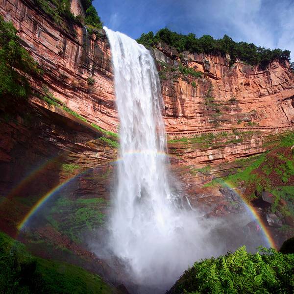 望乡台瀑布有着“华夏第一高瀑”的美誉,比人尽皆知的黄果树瀑布要高出一倍以上。来到望乡台瀑布不仅可以欣赏到飞瀑高于九天,感受到水声震耳欲聋,在夏季天晴之日,每天上午九点到十一点左右,经阳光的折射,望乡台瀑布几乎都会准时出现彩虹,彩虹与飞瀑融合,展现力与柔交错之美。它还包含着自然景观“天下第一心”。图|微博用户@女女2018快乐的天使▽ 出现彩虹的望乡台瀑布 ▽图|微博用户@女女2018快乐的天使图|微博用户@女女2018快乐的天使门票: