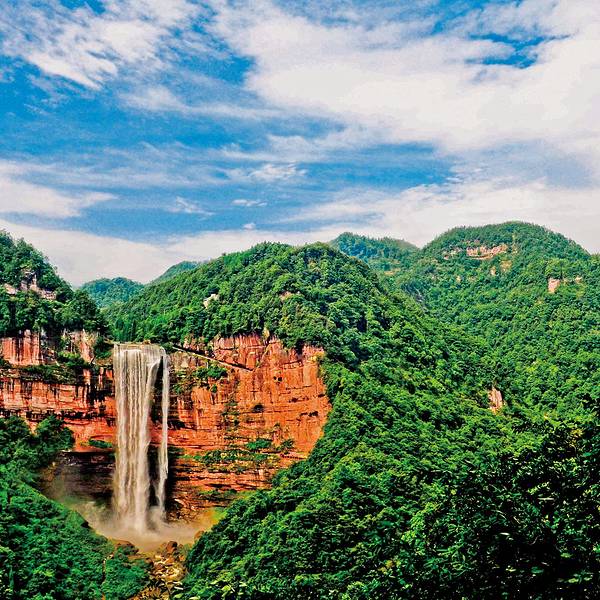 四面山望乡台瀑布有华夏第一高瀑之称。在瀑布前驻足玉珠飞溅,好有气势四面山望乡台瀑布有华夏第一高瀑之称。比黄果树大瀑布高出一倍,第一高瀑实至名归。在瀑布前驻足玉珠飞溅,好有气势。爬到半山观景台看瀑布,完整的瀑布全景照展现眼前。