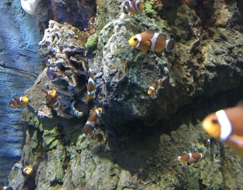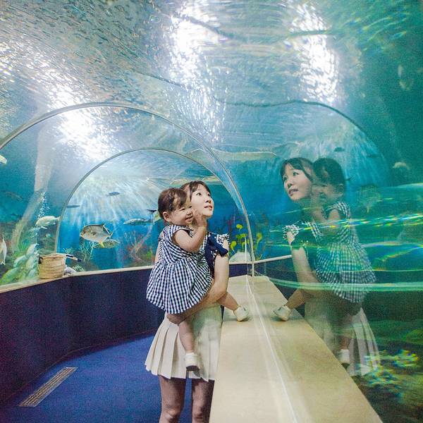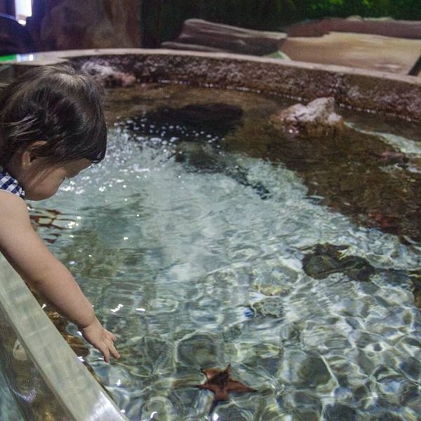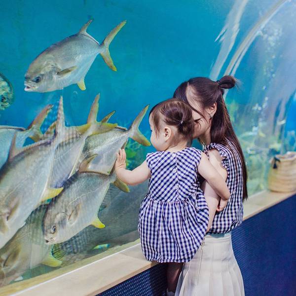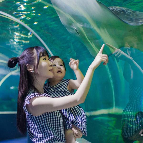 到了公园门口,一刷房卡,屏幕上随即跳出了自己在入住时拍下的大头照,心里跟着颤抖了一下~~~天气不太给力,去的时候时不时飘点阵雨。感觉天气把乐园的童话感都减弱了,等到傍晚亮灯的时候,温暖微弱的灯光从这些迷你的建筑里透出,依稀能看到些梦幻的感觉。公园有两大城堡,一个叫king castle,另一个没什么悬念就叫Queen castle了。这个king castle是公园内的主体建筑,有点迪士尼城堡的感觉。king castle里面是个餐厅,可以休息吃点简餐什么的,价格很OK。Queen castle里面是5D电影院,这个等会介绍哈。来珍珠乐园,站在king castle前来张合影是必不可少哒!可惜当时宝宝有点困了,不太配合;年纪太小,也没什么公主城堡情结。估计3,4岁的宝宝会更喜欢吧!广场少不了的元素就是鸽子。鸽子不怕人,有人喂食,哗啦啦一拥而上,看来平时喂食的客人不多呀。由于去之前没做什么功课,看到广场上突然出现的观光小火车,还是惊喜了下。每逢半点,观光小火车可以免费带走客人围绕乐园一周。还有一些知名的卡通人物同行。我问戴先森要不要坐,他执意说,看上去太山寨了,不坐。。。下雨的时候,我们就躲进乐园的海洋馆里。富国岛的海洋馆虽然比不上长隆的海洋世界,但胜在人少,很多时候海底隧道只有我们仨,这里,才是名副其实的鱼比人多。一只海星大剌剌地吸附在了玻璃墙上Suyi第一次来水族馆,异常兴奋,看鱼的眼神仿佛看到了异次元的生物,充满好奇和不解。我说,你和大伙打个招呼吧!于是,她拍了一路的玻璃。。。这里鱼的种类,数量都属于一般,没看到水族馆里最能抓眼球的锤头鲨、鲸鲨之类,都是一般的鱼。但是小孩子无所谓啊,照样玩得很开心。水族馆里还设计了个废弃沉船的景观,一只魔鬼鱼趴在船上,估计睡着了吧,直到我们走,它都纹丝不动。建议大家入园以后拿一份地图,上面有水族馆的表演时间,比如美人鱼表演啊,潜水员喂鲨鱼之类的。这样来水族馆,体验会更生动些。看到了一条大苏眉,厚嘴唇太好认了。作为家长带着孩子来水族馆或者动物园这种地方,要比单纯自己来,做上更多的功课,以防孩子一路问这是什么?那是什么?为什么?水族馆里除了大型的鱼缸、隧道,还有一些小型的浴缸,同类的海洋生物都被归置在里一起。也挺有看头,我们饶有兴致地看了很久。mini小丑鱼的鱼缸,以前浮潜看到的都是大只的,那么小的还是第一次见。实在太可爱、太Q啦!不过~~~密集恐惧症会害怕吧?色彩缤纷夺目的一群热带鱼,身姿灵动,赏心悦目。隔着玻璃缸看鱼和潜水看鱼最大的优势是,短时间内能看到不同大小、种类多鱼更多,而且轻松。还有个触摸池,里面有些海星之类的软体动物,可以给小朋友们触摸一下,感受来自海洋的触感。公共区域设计得不错,自然野趣十足。越往里面走,发现乐园水族馆的面积并不小,而且海洋生物的分类展示很科学,并有少量陆地生物,特别适合带小孩子过来,在玩乐中学习自然知识。你这是看到了什么表情如此惊讶?这里还展示着一些陆地生物,比如乌龟、蛇、蜥蜴、昆虫之类的。不过还是海洋生物更吸引人的关注,也更具观赏美感。在水族馆的出口,还能看到企鹅哟!企鹅走路的姿势憨态可掬,在水里游泳却能做到“神龙见首不见尾”带着suyi看了很久,回头一看,感觉整个水族馆的小朋友们带来这里报道了!出水族馆,恰逢雨停。不过雨天,这里许多游乐项目都是无人状态,排队,更是不存在的。suyi还没到1米,因此乐园里她能玩的项目比较少。少数能玩的里面,都是一些比较温和的项目。比如这大小通吃的旋转木马。连坐木马的人都那么少,我们特自在地从这匹马拍到那个宝座。连着坐了三次,平日里的“摇摇车”控终于满足地离开了。1米以下小朋友能玩的,都是这种画风的。suyi向来喜欢刺激,坐完小蜜蜂以后,露出了一个嫌弃的表情,好像在说:你们就带我玩这个?我都不带怕的!感觉把一年里坐旋转类游艺项目的额度都用完了,这大茶杯我带着suyi坐了一次,后来我一个人去看5D电影,戴先森又带着她来坐了两次。有木有发现,木马、小蜜蜂、茶杯全是转圈圈的项目,陪玩的我们表示,快转蒙圈了好嘛!