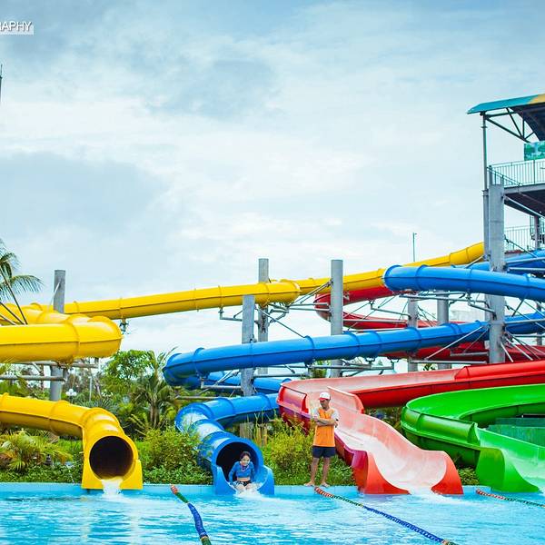 富国岛珍珠游乐园占地面积17万平方米,拥有很多刺激的水陆娱乐项目,适合各年龄段的大人和小孩游玩,一家人出游不可错过! 游乐场内有丰富的水陆游戏设施,室外游乐区有云霄飞车、巨型摩天轮、UFO飞盘、高空旋转、翻天飞鹰、碰碰车等各种精彩刺激的游戏,还有能同时容纳3000人观看表演的海豚表演馆。而室内游乐区则有5D电影院以及各种的大型电玩。 此外,游乐场内还拥有高空快速滑水道、懒人池、海浪池等的水上世界,以及一个大型的海底世界,可以观赏各种热带鱼和企鹅、海龟等。 △ 超美的夜景喷泉,诸多精彩表演等你来玩 △ 刺激的水上娱乐项目,各种滑梯滑道任你选择 △ 来到物种丰富的海洋宫,奇妙的海洋知识等你探索