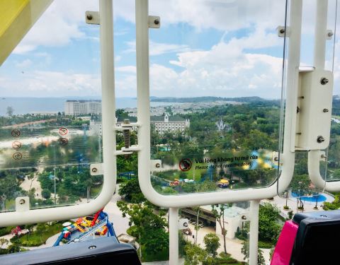 感觉当了妈以后,我好像一只多啦A梦,包里啥都能变出来。我是爽高一族,特别喜欢玩这种飞得高的。戴先森带着suyi,我就一个人上啦!不知道是不是因为年纪大了平衡感变差了,飞到最高点的时候,感觉有点刺激过头啦!乐园里还有些设施就属于看别人玩比自己亲自上更好玩系列,比如这跳楼机和大摆锤。公园里人少,不过就是只有一个人要上去玩,工作人员也会开启设备的,这点大可以放心。水上乐园也是珍珠的一大亮点,大家可以带好泳衣前往。阴雨天,下水还是有些凉的,我们带着宝宝没法玩,就进去随便逛了逛。看着别人扛着大泳圈上楼排队,带着娃的人只有羡慕眼红的份了。这个超好玩,冲下来的时候会作钟摆运动,等到动能释放完,才会滑到泳池里。水上乐园最高的三条滑道,等了老半天都没有人下来。这种放到上海的热带风暴,绝对是需要排很久的队好嘛?虽然,带着宝宝,没法玩水上世界。但是,这个地方简直是为我们度身打造的,那就是电玩城+儿童乐园。面的设施都很新,也几乎没有什么人。最关键的是,所有游艺机都是免费的!也不限游玩时间!亏我们找买游戏币的地方找了很久!然后,我们带着suyi,玩了一轮枪战游戏。因为实在太手痒,也管不了那么多了。玩到后面觉得,这画面好想有点血腥啊?最低头看看小人儿,一脸专注哪有一丝丝害怕的样子啊?里面的儿童乐园,也有很大的一块区域,设施很全,当然也是免费的。带着小宝宝来珍珠乐园的家长,记得来这里看看哟。到了儿童乐园,就是你的天地啦!接下来,请开始你的表演!我陪着suyi在儿童乐园里玩,戴先森在外面打电玩。然后等5D电影时间到的时候,我俩换班。他负责陪玩,我一人去看电影。小夫妻带娃出行,也是需要科学分配各自工作,以求更完善的游玩体验哒!这个就是queen castle了,比king小了一大圈。1米以下的宝宝也不能进入。5D电影比我想象中短,二十分钟左右,影院椅子一看就不刺激,不是那种需要绑安全带的。总的来说带入感不强,路过可以看看,不用专门安排时间过来。看完电影,我们仨也离开了儿童乐园。在儿童乐园里放完最后那一丢丢的电,一下午不舍得睡的suyi终于在背带里睡着了。于是我俩准备找个地方休息会,去哪休息?感觉没有比摩天轮更适合的地方了!休息,看景两不误!suyi第一次坐摩天轮,居然全程都是在睡着中完成的,替她记录下来。摩天轮还是非常推荐一坐的。升上去的时候可以俯瞰公园全景,连远处的珍珠高尔夫、包括海岸线都可以看到。晚上亮灯的时候,摩天轮也非常美唯美。如果两一天里要去完动物园和珍珠乐园的话,我建议把珍珠乐园放在下午。因为珍珠乐园里的音乐喷泉表演,是在晚上才有的。晚上7点,8点各有一场。五光十色的喷泉,确实要夜晚才会更好看。印象中是第一次正襟危坐看喷泉表演。比之前在迪拜看到的震撼很多。不同的音乐节奏搭配起伏错落的喷泉水柱,还有多彩变幻的灯光,美轮美奂。背景音还有旁白解说,不过是越南语,我们听不懂。总之非常华丽,华丽到不像越南该有的表演。。。强烈推荐,离园前最后一大惊喜不容错过夜晚,园内的建筑被灯光一一点亮,充满浪漫的童话氛围。因为suyi饿了,我们也来不及再多拍些夜景,只能速速回酒店。 展开