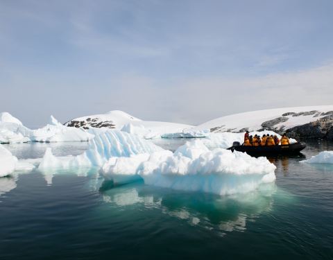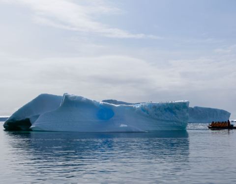 威廉敏娜海湾是南极岛上一处非常壮美的海湾,海湾里漂浮着许多大大小小的冰山,有些冰块里呈现深邃的...