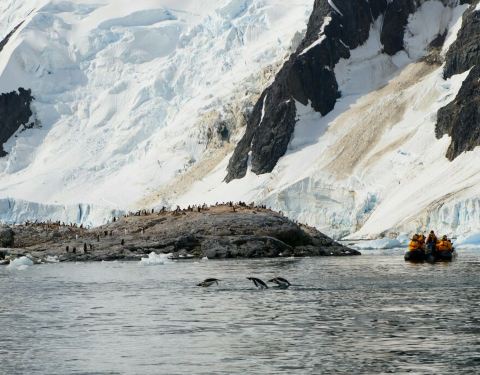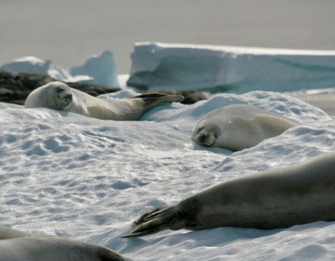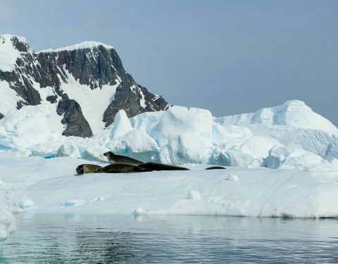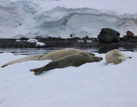 威廉敏娜湾是南极一处海狮和海豹聚集生活的岛屿,岛屿的一半以上面积基本被冰雪覆盖