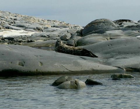 浮冰在海面飘过,异常的寒冷,但这里经常有鲸鱼出没,是观赏鲸鱼的好地方。但是以前这里也是暴徒猎鲸的地方