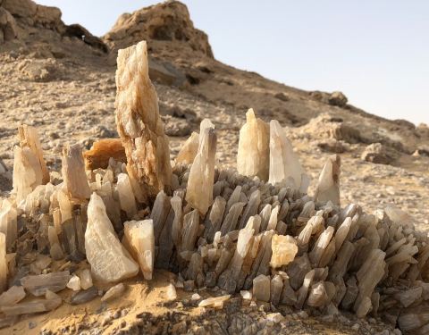 一个很美的山坡,由水晶石组成,不论是柱状,洞穴还是树状都是沙漠气候冷热与岩矿所交替产生的天然形态。 2016-12-21 19:06