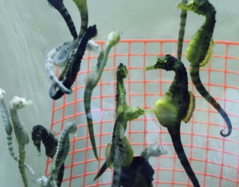 有海马,海星,寄居蟹等各种水族生物,对海马感兴趣的可以去看看。