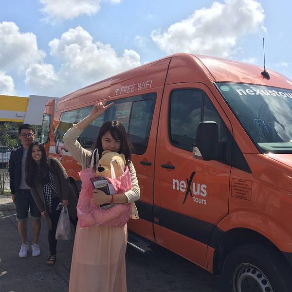 很快的入了关,来接机的车子已经准备好了,大叔很热情,人特别好。机场离度假区并不远,大约30分钟的车程。厚衣服还没来得及脱下,热乎乎的合影一张~