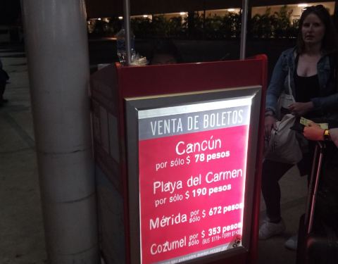 到达坎昆机场,出关很快,一定记得“入境卡”的下半联要保存好,不然出境的时候还得办理补办手续。就是6点到到坎昆,换钱的地方甚至没开门,ADO的大巴也没到运营时间。虽然没有4G,但是3G的信号也还是挺不错的。取钱没成功,也没有英语提示,最终只能放弃了。ADO最早的发往坎昆市区的车是9:20,没有ADO的大巴,打出租车又是贵,只能选择只能坐最划算的shuttle bus了,每个人是200 MXN,没有比索就只能付13美金,好坑啊!最晚的前往市区的大巴是22:20