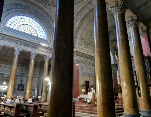 在当地是最大的教堂了。可以免费点小蜡烛祈福。巨大的一排石柱很震撼,抬头看到彩色大穹顶很炫丽。