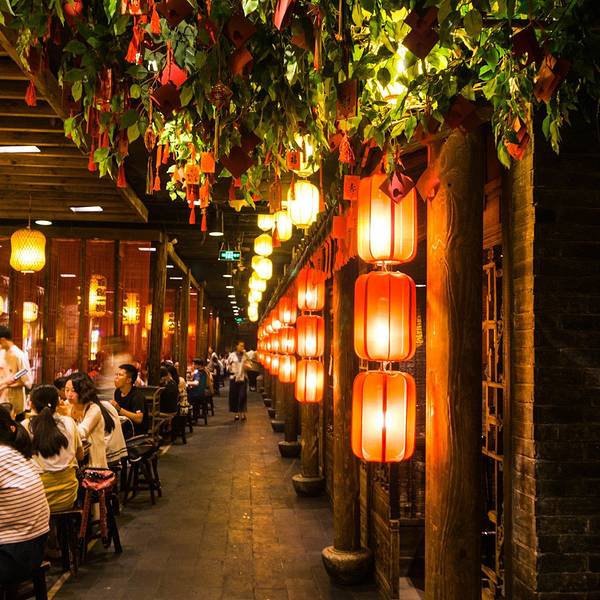 2、店铺里挂满的灯笼映着食客的脸庞红彤彤,映着食物的味道香喷喷。4、一阵风卷残云过后……