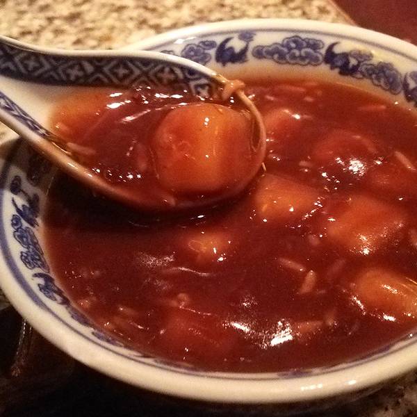还有这个煎饺也特别好吃。小圆子,南京街巷传统小吃,酒酿、赤豆、元宵加红糖,传统、地道!这都是正常的