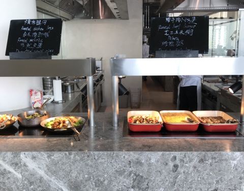 浅色淡雅的餐厅布局,加上顶层落地窗户的柔和采光,给人以温馨的就餐环境。西式菜品繁多、日式刺身寿司、中式馄饨小笼包、各种烧味更是一应俱全,推荐餐后甜品,口感细腻,非常满足。