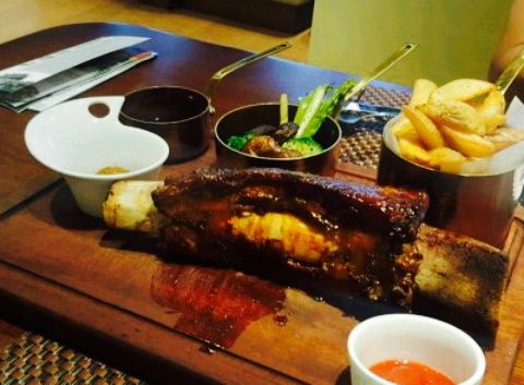 很早就想来尝尝这家的战斧牛排,一直都没有机会,这次赶上四个人聚餐,结果没有提前一天预定,战斧牛排卖完了。所以如果你也是想来尝尝战斧牛排,见到这条网友攻略,记得提前一天预约哦。在这里就餐面包畅吃。在...很早就想来尝尝这家的战斧牛排,一直都没有机会,这次赶上四个人聚餐,结果没有提前一天预定,战斧牛排卖完了。所以如果你也是想来尝尝战斧牛排,见到这条网友攻略,记得提前一天预约哦。在这里就餐面包畅吃。在端上桌前,面包会烤箱加热,所以口感还是很不错的,但是也不能多吃,吃多了后面的食品就吃不下了。因为没有战斧,我们选了小牛腿,因为是小乳牛,肉很嫩哦。一份598的套餐,四人吃正好。也不会太撑。