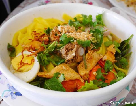 虾春卷味道超级好,他们又新鲜又裹得紧紧的,我点了一个小圆面包,河粉汤也是极好的,而且咖喱菜还有...