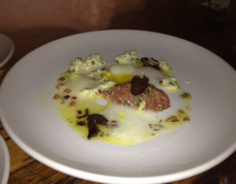Ramp Gnocchi, Soubise, Vidalia , Guanciale, Pickled Garlic, One Hour Egg