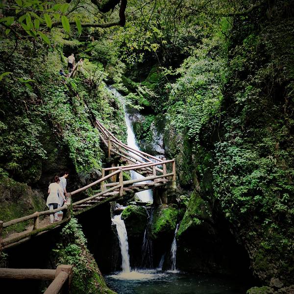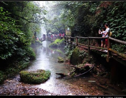 飞泉沟位于都江堰市青城山后山,全长10公里,沟中奇峰连绵,秀壑参差,飞泉幽潭,短峡长滩,入眼之处无不充满诗情画意,给沿途增加不少感官的愉悦。