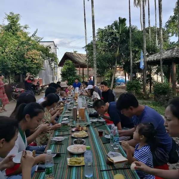 两天一晚的旅途在这就结束啦,开开心心的大家来个大合影。一大桌的早餐在和你说:早安!