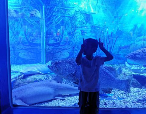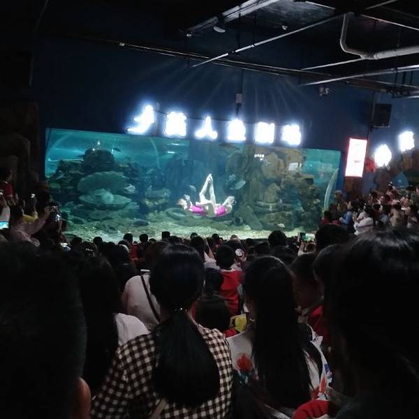 孩子玩的很开心,里面项目也很多,重点是很多免费的!!美人鱼表演海豚表演都很好看,人流多的地方空调再适量大点就完美了