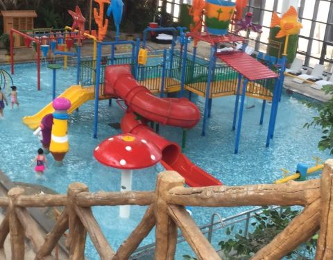 性价比高。儿童一米四下免费,198两个大人。室内外60多个池子,有儿童水寨,功能池,SPA池。鱼池另收费。蒸房石板房造型不错。休息区有免费饮料水果。服务很好。