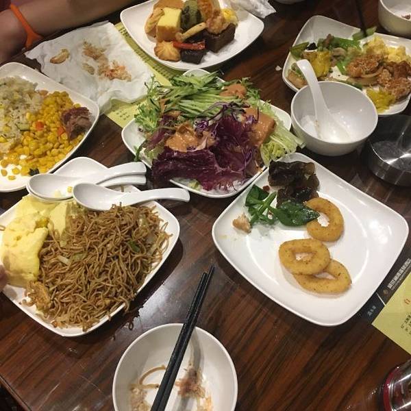 环境挺好的,服务也好,每一个服务人员看见人都会打招呼,卫生也挺好的,东西齐全,还有女士用的护肤品什么,吃的自助餐也不错,品种很丰富,麻辣烫,烤鸭,羊肉串,小块蛋糕,水果,菜品,汤,粥等很丰富,就是...