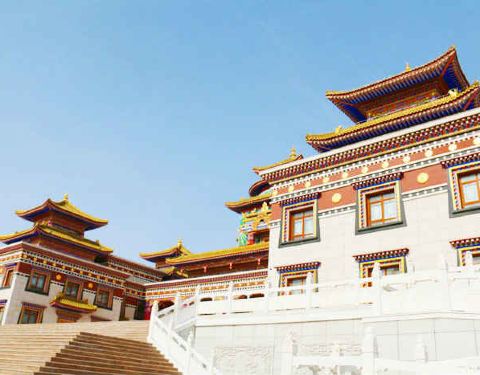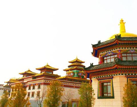 内蒙古鄂尔多斯伊金霍洛旗乌兰活佛府:位于伊金霍洛旗北山植物园内,是十二世乌兰活佛学习、生活、弘法的场所。整体建筑融蒙、藏、汉建筑风格于一体,恢宏大气,神圣庄严。
