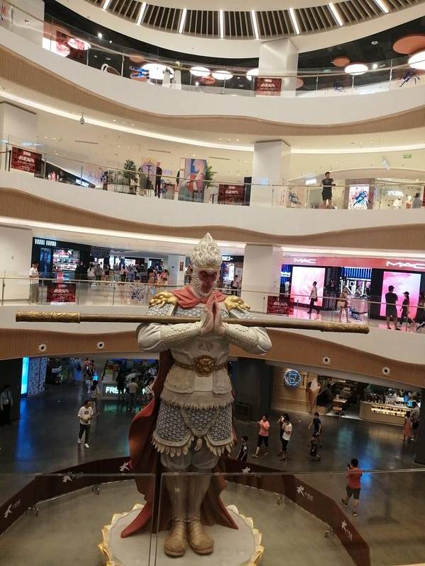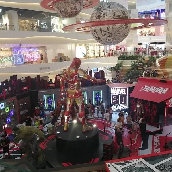 南广场玄奘的雕像和大雁塔夜景的大雁塔南广场旁边大悦城里的雕像大悦城里的漫威展