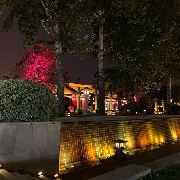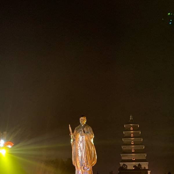 环境特别的漂亮,有这个南广场这头最鲜明的,嗯,就是他的石刻啊,远处看上去把整个所有的历史的记忆...大雁塔这边真的很适合晚上过来逛一个灯光,环境特别的漂亮,有这个南广场这头最鲜明的,嗯,就是他的石刻啊,远处看上去把整个所有的历史的记忆都回到石头上了。