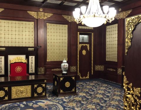 在位于吉林省长春市的伪满皇宫博物馆内,是一进门就可以看到的正殿,也是日本人修建的,本来用于溥仪和他后宫居住,但是溥仪害怕里面有窃听装置,没有启用