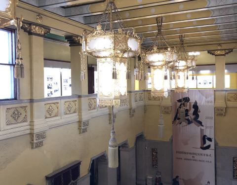 同德殿是由日本人设计的,建筑风格为中日结合,又带有西洋味道,屋顶是中国典型的黄琉璃瓦,而屋脊又...