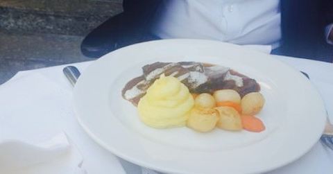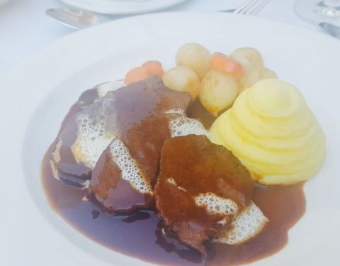 Breast of guinea fowl on tarragon sauce with romanesco and potato puree