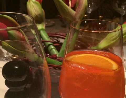 Fillet of “Black Angus” sliced in Cognac pepper cream with roasted mushrooms, vegetable and linguini