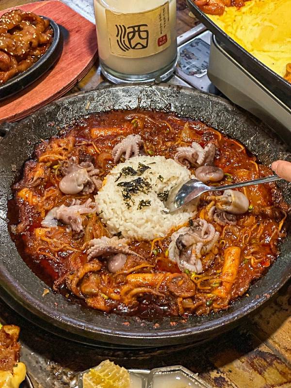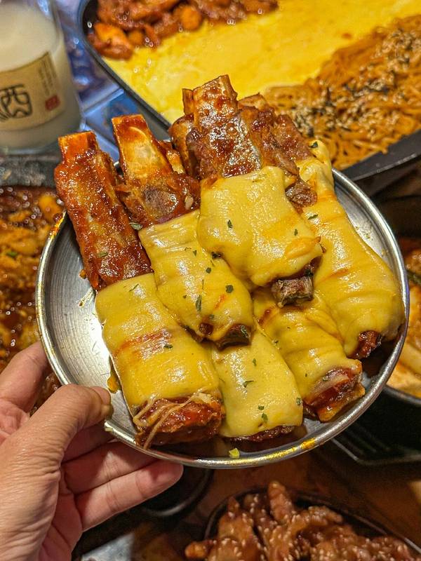 🍖芝士排骨:韩式大排档的招牌菜品!他家做的很出色!排骨大块很好剔骨,肉已经炖的非常入味了!芝士份量给的也很大方,微微甜微微辣!很好吃!