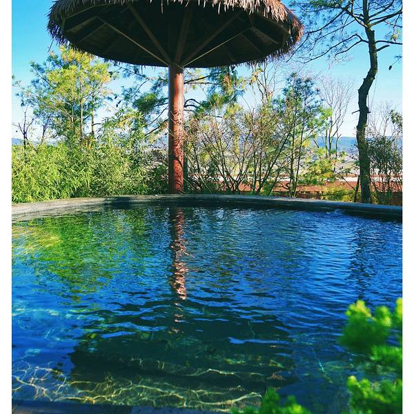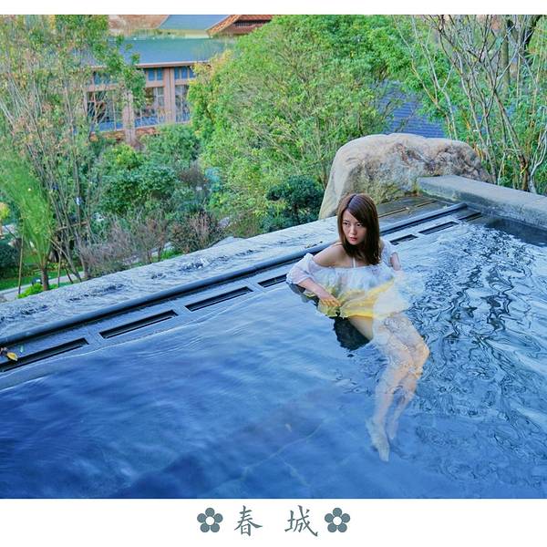 按捺不住激动,赶紧褪去浴袍跳入池水中,水温不冷不热的正是刚好,在池里游来游去,累了便趴在岸边欣赏夕阳西下,这才是真的享受人生呐。平日里被繁琐的工作、复杂的人情世故、生活的压力弄得喘不过气,好不容易有这样的机会可以放松身心,自然是把握在这里的每一分每一秒。在无边泳池里游得累了,便又沿着山路往下走,这里大得实在像迷宫,来时经过的温泉池,回时却一个也没有遇上,真是印证了一百零八个温泉池,个个不一样的说法。我们最终寻了处景色最为特别的池子泡汤,在这里不仅能够享受和友人的八卦时光,周遭一个外人也没有,还能够望见温泉中心的大厅,四周灯火通明,温泉处灯光温暖隐秘,真是非常人性化的设计。