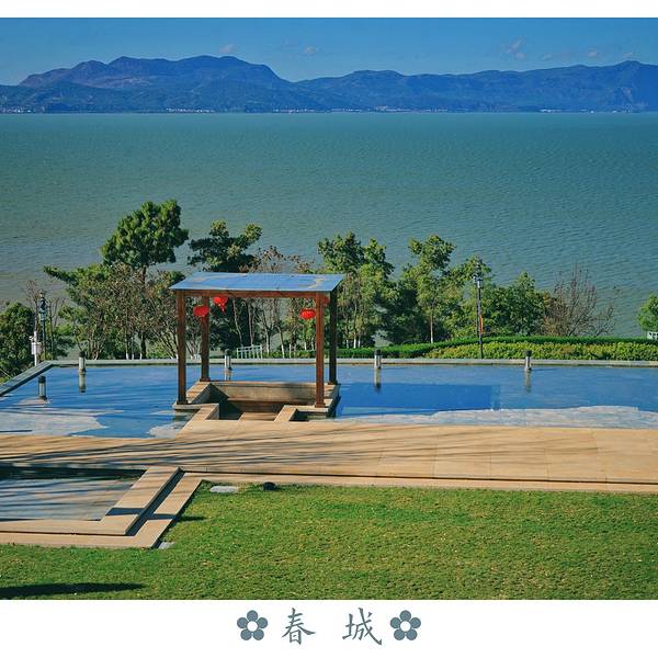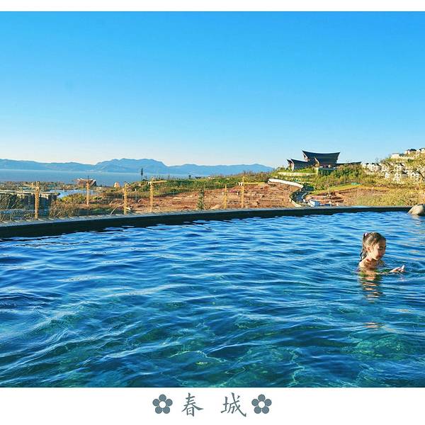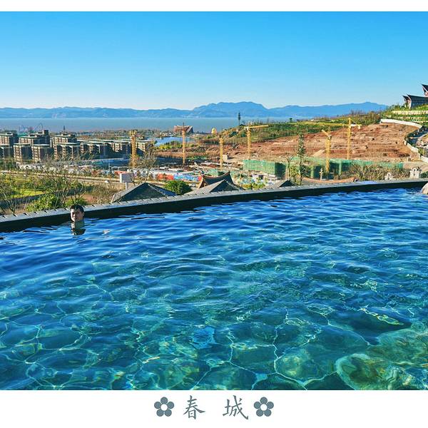 走入古滇温泉中心,竟然有一种走进“诺亚方舟”的既视感,成都的小伙伴儿一定对诺亚方舟再熟悉不过了,毕竟是享誉蓉城的洗浴中心。我不由地对友人说出三个字,高大上!古滇温泉依山而建,大大小小共一百零八个温泉池,可谓是十分豪气了。今年跨年在西岭雪山经历了人挤人的“盛况”,又在花水湾温泉见识了煮饺子式的泡汤,忽然来到这里,竟然有不少温泉池就像私汤一样幽静,实在是让人感到惊喜。这里的温泉池数量众多,但每个都各具特色,有宽阔的大水池,也有私密的小水池。让我惊讶的是,每一处池子都有温度表,直观地显示此刻池水的温度。如果想要排毒养颜缓解肌肉疲劳,自然是选择温度高一些的温泉池了,而像我这样天生怕热的事儿妈,也可以选择凉一些的池子,反正总有一款满足要求。因为是依山而建,山里蜿蜒着不少栈桥和步道,沿着栈桥往上走,发现处处都是惊喜。一些温泉池是连在一起的“双生”,一些则是层层叠叠的“梯田”状,还有一些隐藏在树林之中,不细心寻找都很难被发现。不得不说在这里泡汤是真的享受,四周是茂密的丛林,眼前的景色是远山和云海,伴随着远远传来充满禅意的音乐,实在是惬意到了极致。当沿着山路到达山顶时,眼前的无边泳池让我们着实惊呆了,不仅仅因为它的“大”,还因为它的“美”。我曾经体验过不少的无边泳池,在新加坡金沙酒店的无边泳池里,俯瞰过城市夜景,在吉隆坡菲斯酒店的无边泳池里,远眺过双子塔日落。而这一次的无边泳池,虽隐藏在山林之中,却又能完美地观赏到古滇名城的景色,这实在是特别的体验。
