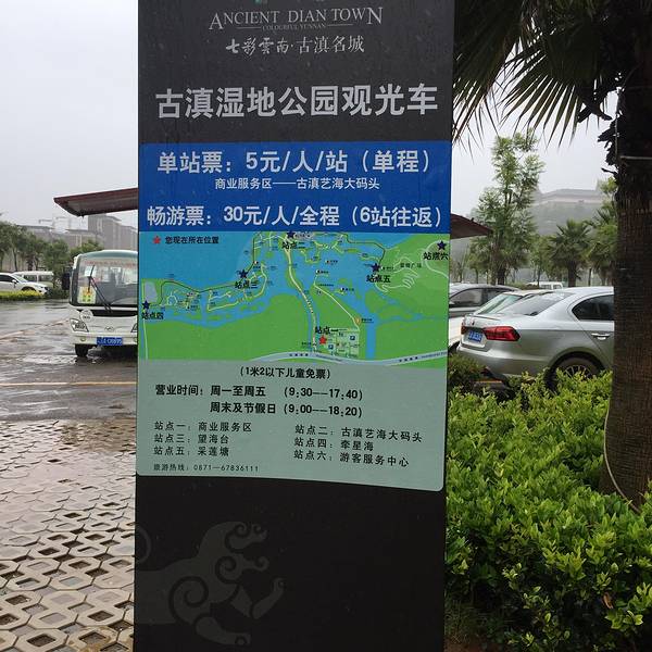 金骆驼 建议来这里游玩半天以上时间,码头可以乘船出游,时间30分钟,费用50元一人,儿童半价以及其他优惠政策七彩古滇名城,位于环湖南路上比较靠近晋宁了,一直觉得就是个新开发的楼盘,来到了现场才知道,楼盘只是其中一部分,整块区域还有湿地公园、古滇艺海大码头、国际养生养老度假区、七彩云南•古滇温泉山庄以及正...七彩古滇名城,位于环湖南路上比较靠近晋宁了,一直觉得就是个新开发的楼盘,来到了现场才知道,楼盘只是其中一部分,整块区域还有湿地公园、古滇艺海大码头、国际养生养老度假区、七彩云南•古滇温泉山庄以及正在建设“七彩云南•欢乐世界”主题乐园。这次主要游览了湿地公园和古滇艺海大码头,在湿地公园的旁边就是欢乐世界主题乐园,两个地方仅一条河之隔。从环湖东路一直顺着南边走,就可以看到一个门牌坊,这就快到七彩古滇名城。很大的一块停车场,停车区域有麦当劳和怡心园(可以用餐的地方)。原来的大门不知道什么原因被堵了,新开的大门没有门坊,进去后的左手边就是原来的大门位置,上面写着滇海古渡,进入湿地只有一条路,路得左边是正在建设的欢乐世界主题乐园,路两边黄色的小菊花正在盛开,湿地公园的风景慢慢展现在眼前,大约20分钟的路程就可以到达古滇艺海大码头。古滇艺海大码头建设在五百里滇池的南边,建设在水面上与观光景色融为一体。码头采用古滇国特色的长脊短檐杆栏,古朴、粗犷,很像郑和宝船停泊在滇池边,与这里的景色融洽。建议来这里游玩半天以上时间,码头可以乘船出游,时间30分钟,费用50元一人,儿童半价以及其他优惠政策。交通:乘坐K31、K38的终点站即可到,地铁到不了这个地方。