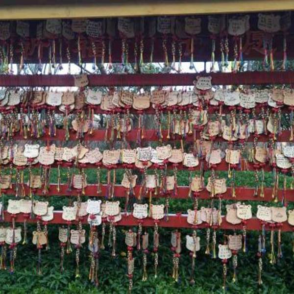 走进民俗中心,复古的装饰和各式各样的传统手工艺摊位简直让人看花了眼,大厅中央是七彩云南古滇名城的整体规划图,没有想到这一片土地除了养老小镇和温泉,还有满足少女心的摩天轮。糖饼是我小时候的回忆,记得我还是小盆友的时候,父亲带我去公园的时候总是会让我转糖饼,我每次都转到兔子或是大公鸡,却总也转不到最想要的龙。现在长大了,已经很久没有去过公园了,不过关于糖饼的记忆仍然深深地印在脑海里。这不,这一次转糖饼,又转到了兔子,只能说我和兔子真是断不了的缘分呐。除了转糖饼,这里的传统手工艺摊位还包括充满回忆的棉花糖、体现云南特色的扎染、代表云南风味的鲜花饼以及有趣的草编小玩意等。如果时间充足的话,在这里各式各样的摊位逛上一大圈,挨个地体验,一定能有许多有趣的发现。