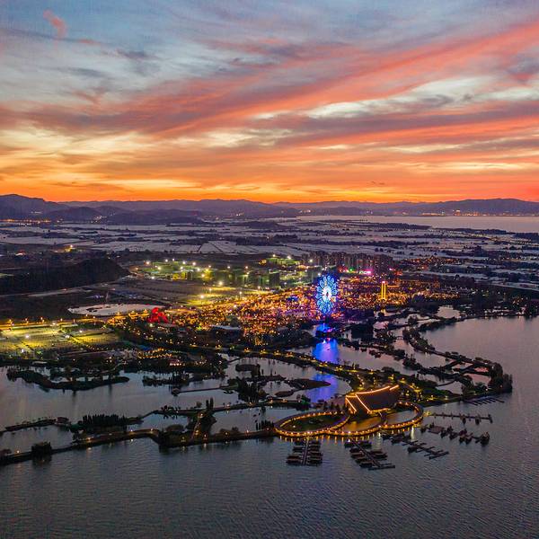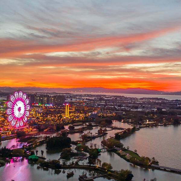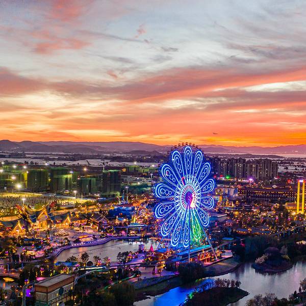 虽然拍摄的时机已经稍稍晚了,但这里黄昏的美依旧遮挡不住,正好,那漂亮的滇城之眼摩天轮也亮起了漂亮的光第一天,我带着疲惫在下午来到古滇名城,在傍晚时看到天边一抹金黄色,我迫不及待地升起无人机去看看这里的美。虽然拍摄的时机已经稍稍晚了,但这里黄昏的美依旧遮挡不住,正好,那漂亮的滇城之眼摩天轮也亮起了...第一天,我带着疲惫在下午来到古滇名城,在傍晚时看到天边一抹金黄色,我迫不及待地升起无人机去看看这里的美。虽然拍摄的时机已经稍稍晚了,但这里黄昏的美依旧遮挡不住,正好,那漂亮的滇城之眼摩天轮也亮起了漂亮的光。七彩 云南 ·欢乐世界的摩天轮在傍晚更是大放光彩,更照耀了滇池的美,虽然风很大,我还强忍着担心,把无人机拉高,晚霞映着摩天轮连着滇池,一幅醉人的画卷。 展开