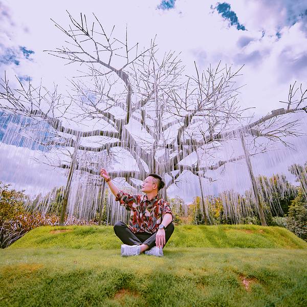 我身后的这件装置艺术“呼吸树”曾出现在“理想家园·古滇家宴3rd”上,通过“呼吸”主题的融入,裸眼投影和新材质led技术的结合,制造类似《阿凡达》中的视觉效果,让大树和草地鲜活起来,让我们得以享受来自大自然的深呼吸。虽然来古滇精品湿地公园是在白天,没有看到“呼吸树”最美的一面,但是依旧惊艳到了我。七彩云南·古滇名城这些年一直在邀请名家艺术入滇,实现艺术共创,共话审美情趣和造物之心。