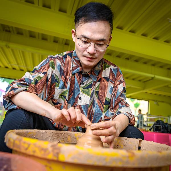 比如邀请国内知名新锐设计师王婳入滇驻地考察,她偶然间发现,以X光成像的板蓝根脉络与传统扎染图案非常相似,然后结合传统工艺,共创出全新的“古蓝新礼”比如与艺术家文那共创的“古滇山海经”,九位来自云南的守护神,让旧的传统复兴,形成新的仪式感,倡导人们更加珍视美好生活,尊重自然。比如邀请成都蜜多影像机构主理人Sunny Peng和画物志设计师Yoga入滇驻地考察,以音乐、历史、自然、民艺、美食五种云南元素与极具时尚属性的世界当代波普艺术融合,共创出中西结合的“云南波普”七彩云南·古滇名城还与“艺术怪杰”罗旭先生共创过很多特色陶器,这次借机还很荣幸在建水蚁工坊见到罗旭先生,从他口中了解了很多关于创作中的故事,感受到了他对艺术的执着追求。“蚁工坊”所有建筑群都按照陶文化脉络展开,风格自由大胆并充满了天马行空的想象力,吸引很多的游客来此打卡,一楼里面有很多紫陶在卖,整个二层都是罗旭先生的作品展。在蚁工坊你不仅能体验陶艺创作之路,还能触摸到各种建筑美学,都能带来非常棒的艺术体验。 展开