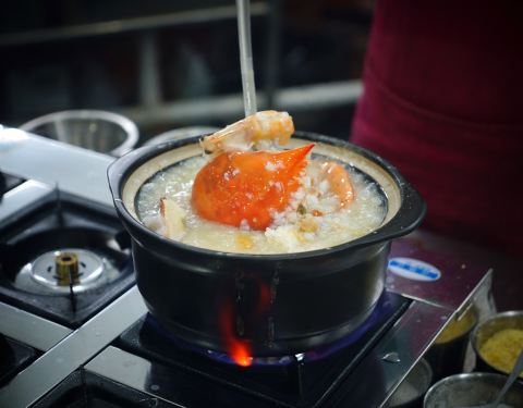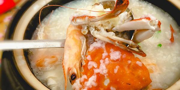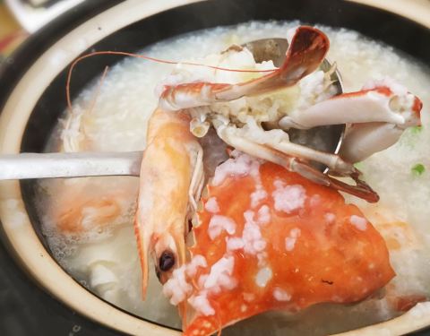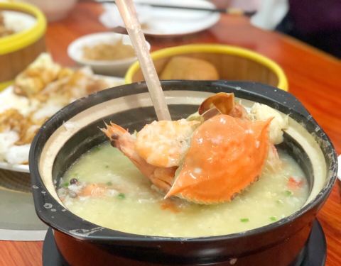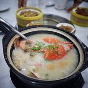 餐厅主营广式砂锅粥,店内面积挺大,有两层楼,每张餐桌上都铺着花色抹布桌布,感觉很温馨。粥的种类有很多,螃蟹粥、艇仔粥、窝蛋牛肉粥等,可以根据自己的口味挑选。此外,还提供虾饺、干炒河粉等广式小食。