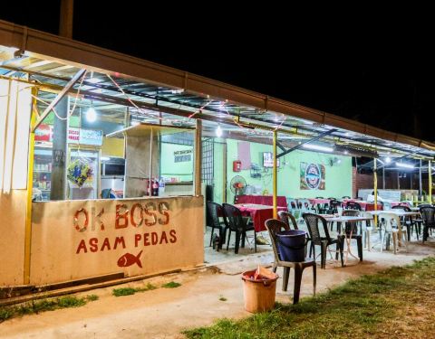 这是一家位于兰卡威海底世界对面的夫妻老婆店,餐厅的位置比较难找,在一条砂石路里面,门口是卖当地小商品的小店。餐厅非常小,也非常简陋,但却有着好味的马来菜。餐厅只提供晚餐和宵夜,夜晚在室外享用美食,品尝着啤酒,吹着风,聊着天,非常惬意。