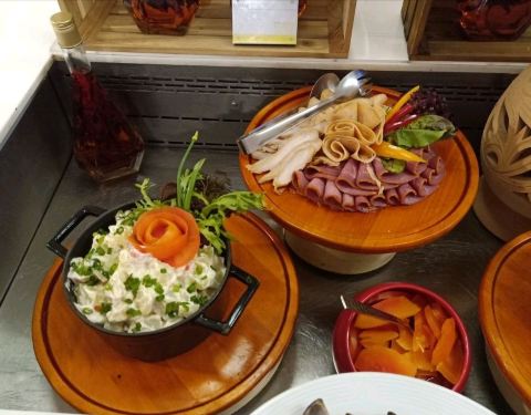 服务么就略显差了点,丝毫不主动,而且态度也不好,最多60分。口味在同等酒店里也差不多,无功无过80分