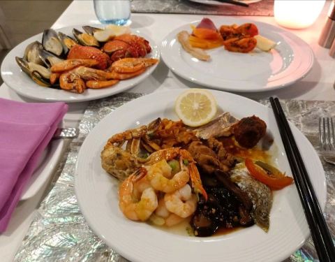 看景第一,餐饮第二,服务第三,景色是无敌海景,丝毫没有遮挡,这点满分。口味在同等酒店里也差不多,无功无过80分。服务么就略显差了点,丝毫不主动,而且态度也不好,最多60分。