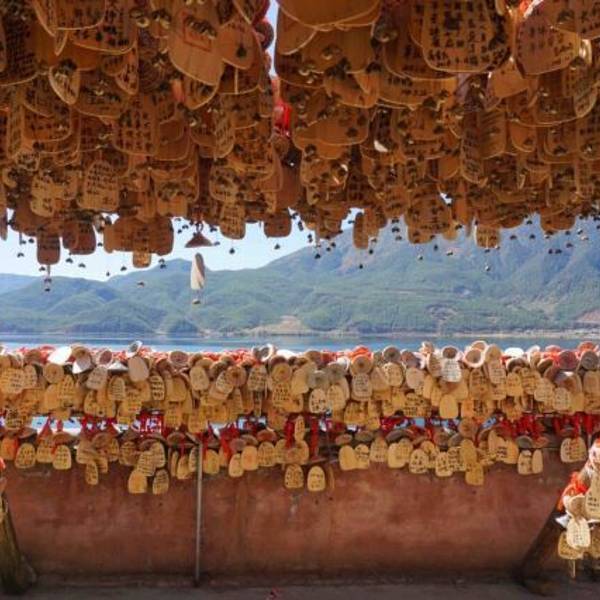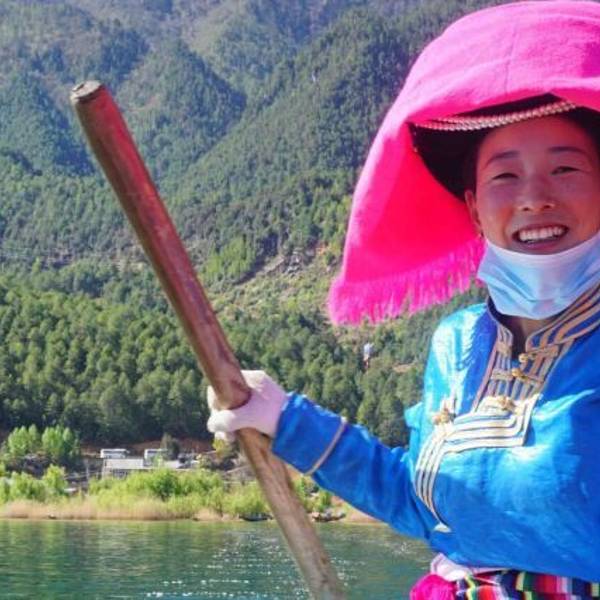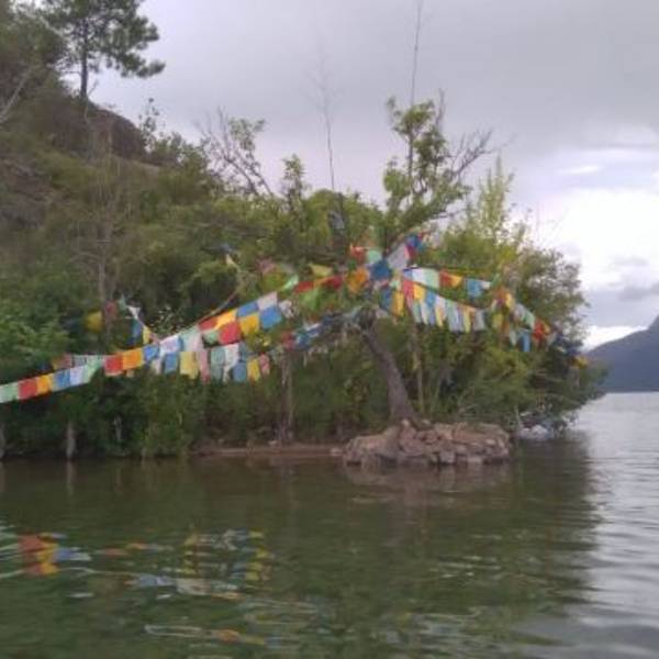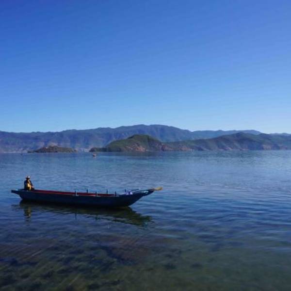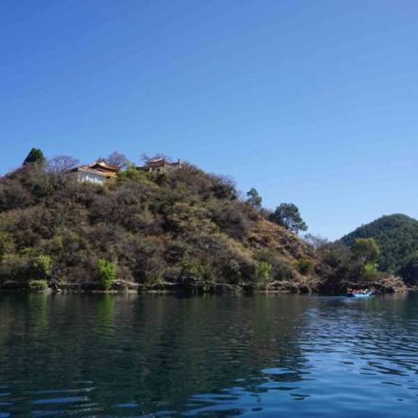 从泸沽湖摩梭山庄乘小船,15分钟可到【泸沽三岛】