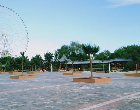 武威凉州植物园西门位于兴盛路,就在武威第九中学的西面。凉州植物园占地面积非常的大,除了大量的绿色植物种植外,还有一个娱乐设施,就是高大的摩天轮,在很远都能看到。