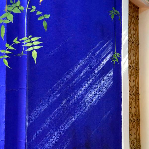 园内各式的热带植物是许多游览者的首道印象,其实很难想象偌大的一个花园竟错落有致地开出100多个不同的品种,椰树、三角梅、藤蔓遍及各个角落,而最引起我们注明的便是园内高低肥瘦的仙人掌,在这片满是艺术效果的花园内它都显得不太真实,但靠近细看才发现那宛如牙签般的刺也着实扎手。沿着竹林小径走到尽头便是花园的核心区,设计师的艺术之感在这里被完全地铺展开来。整座花园自己最难忘的部分恰是当中最独有的一面——蓝。我想可能连Jardin Majorelle都没想到自己设计下的这处圣地,竟在后来打造出一种惊艳了世界的专属颜色——马约尔蓝。