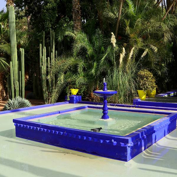 大师伊夫圣罗兰为他的爱人所买下的花园。建筑区域大片使用深沉的蓝色,和几处水景相映成趣大师伊夫圣罗兰为他的爱人所买下的花园。园内绿植郁郁葱葱,遮天蔽日。不同的区块种植着不同的品种。建筑区域大片使用深沉的蓝色,和几处水景相映成趣。